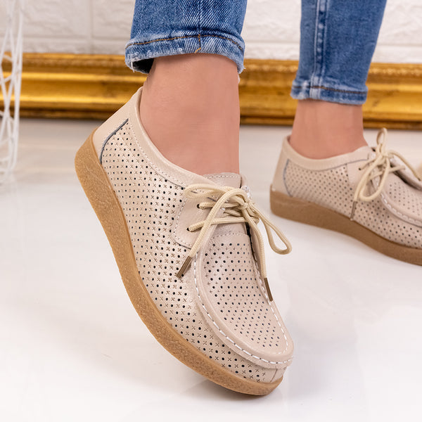 Дамски обувки Kim - Beige са лек и много удобен модел, изработен от естествена кожа с дебелина на подметката 3 см.