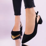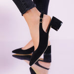 Екстериор - еко велур, интериор - еко кожа, ток - 5 см.
