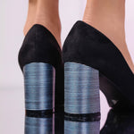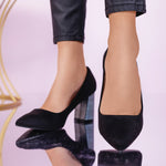 Дамски обувки на ток Angelique - Black са перфектни за Вас ! Изработени са от еко велур,а тока е 7,5см