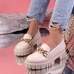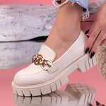 Дамски обувки Ramira - Beige са интересен ежедневен модел, изработен от еко кожа с метална декорация и дебелина на тока - 4,5 см.