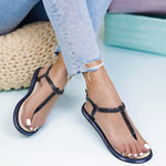 Дамски сандали Delila – Black са симпатичен модел на ниска подметка, изработени от силикон с нежна декорация от камъчета и брокат.