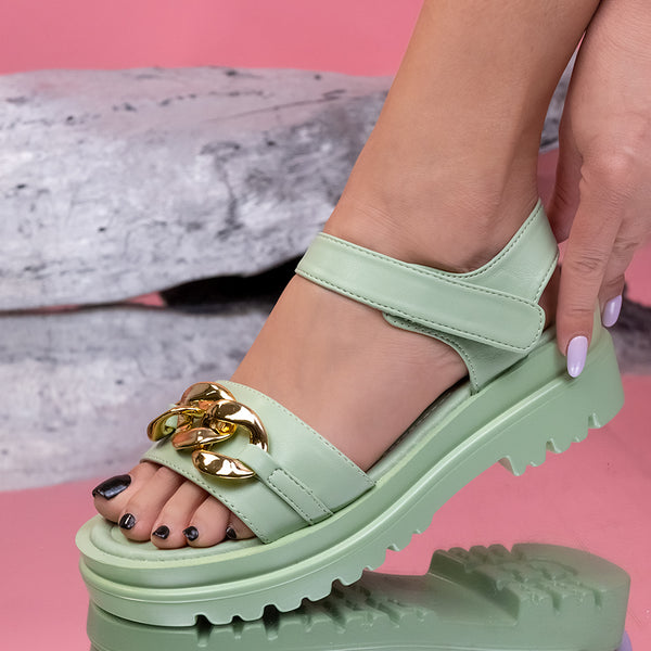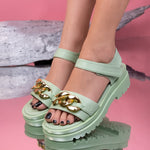 Дамски сандали Versai - Green са много удобен модел с метална декорация, изработен от еко кожа с дебелина на подметката - 4 см.