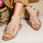 Дамски сандали Dariya - Beige са много удобен модел, изработен от еко кожа с декорация и дебелина на подметката - 4 см.