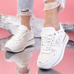 Дамски маратонки Ioana - White са много удобен модел, изработен от еко кожа с дебелина на подметката - 3,5 см.