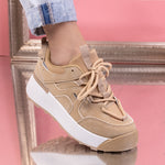 Дамски маратонки Felisity - Beige са много удобен и интересен модел, изработен от еко кожа и текстил с дебелина на подметката - 5 см.