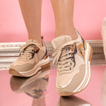 Дамски маратонки Shanaya - Beige са много удобен модел с интересен дизайн, изработен от еко кожа с дебелина на подметката - 6 см.