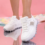 Дамски маратонки Shanaya - White са много удобен модел с интересен дизайн, изработен от еко кожа с дебелина на подметката - 6 см.