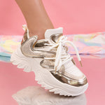 Дамски маратонки Shanaya - Beige са много удобен модел с интересен дизайн, изработен от еко кожа с дебелина на подметката - 6 см.
