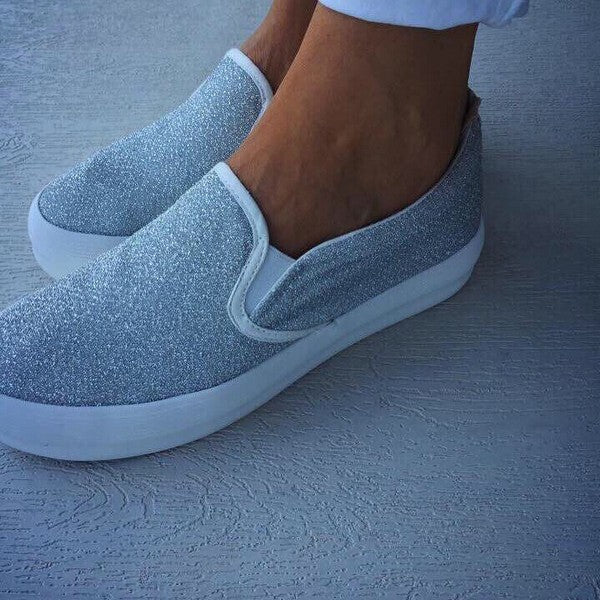 Кецове DENISA - SILVER : Кец на равна подметка изработен от плътен плат в цвят сребро