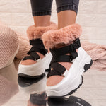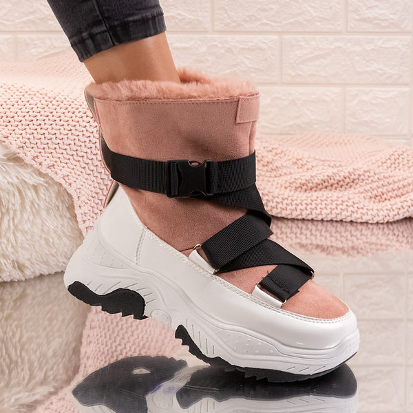 Дамски апрески Adela - Pink са интересен модел, изработен от лачена еко кожа и еко велур с дебела подплата и дебелина на подметката - 5,5 см.