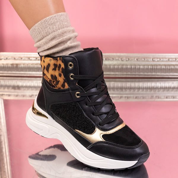 Дамски апрески Verona - Black са много удобен модел, изработен от еко кожа и еко велур с дебелина на подметката - 5 см.