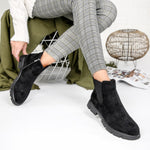 Дамски боти Reyna - Black са изчистен модел с декорации, изработен от еко кожа с топла подплата и дебелина на подметката - 4 см.