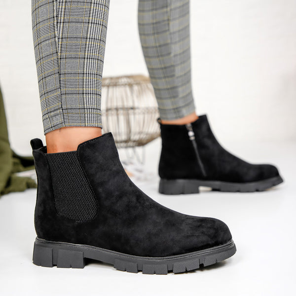 Дамски боти Taylor - Black са елегантен модел, изработен от еко велур и лачена еко кожа с лека подплата и дебелина на тока - 3 см.