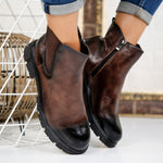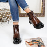 Дамски боти Venera - Black са интересен модел с декорация, изработен от лачена еко кожа с топла подплата и дебелина на подметката - 4,5 см.