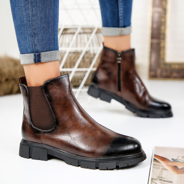 Дамски боти Reyna - Black са изчистен модел с декорации, изработен от еко кожа с топла подплата и дебелина на подметката - 4 см.