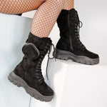 Дамски боти Reyna - Black са изчистен модел с декорации, изработен от еко кожа с топла подплата и дебелина на подметката - 4 см.