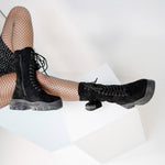 Дамски боти Venera - Black са интересен модел с декорация, изработен от лачена еко кожа с топла подплата и дебелина на подметката - 4,5 см.