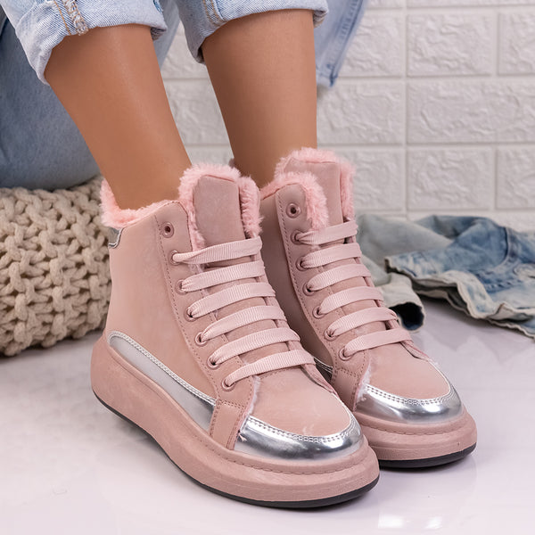 Дамски боти Jason - Pink са много удобен модел с дебела подплата, изработени от еко кожа с дебелина на подметката - 4,5 см.