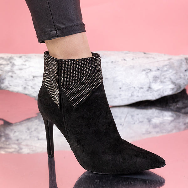 Дамски боти на ток Elicia - Black са много елегантен модел с декорация, изработен от еко велур с височина на тока - 10,5 см.