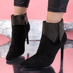 Дамски боти на ток Odeya - Black са много елегантен модел с декорация, изработен от еко велур с височина на тока - 10 см.