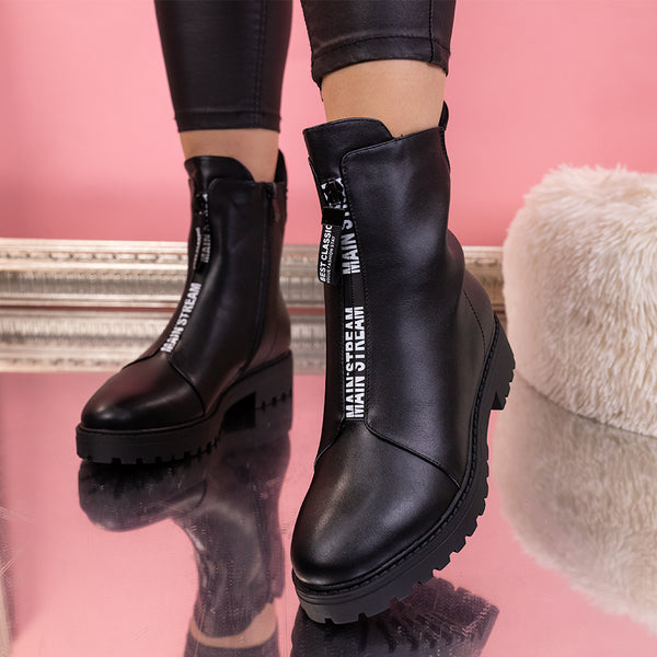 Дамски боти Reyna - Black са изчистен модел с декорации, изработен от еко кожа с топла подплата и дебелина на подметката - 4 см.
