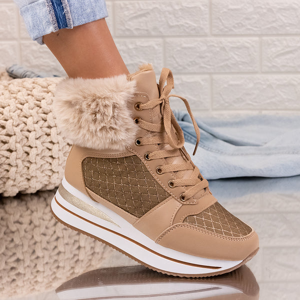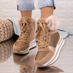 Дамски боти Shona - Khaki са много удобен модел с дебела подплата. Изработени са от еко кожа и текстил с дебелина на подметката - 5 см.