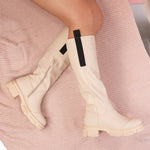 Дамски ботуши на нисък ток Rila - Beige са изчистен модел, изработен от еко кожа...