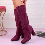 Дамски ботуши на висок ток Graciela - Wine Red са елегантен и изчистен дамски модел, изработен от еко велур с лека подплата и височина на тока - 9,5 см.