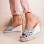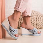 Дамски чехли на платформа Stelia - Blue са елегантен и изчистен модел, подходящ за топлите месеци. Моделът е изработен от еко кожа, платформата е с височина - 9 см.