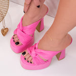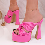 Дамски чехли на ток Helena - Pink са елегантен модел със стабилен ток, изработен от еко кожа. Височината на тока е 14 см, а платформата - 5 см.