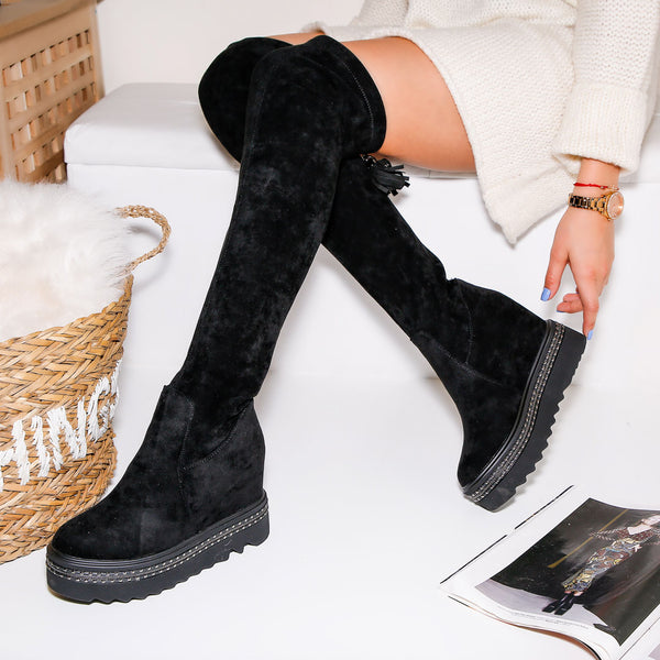 Екстериор - еко велур, интериор - топла подплата, платформа - 9,5см,обща дължина на модела - 61 см.