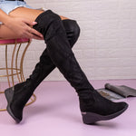 Дамски чизми Sage - Black са изчистен и много удобен модел с височина на платформата - 6 см. Изработени са от еко велур, общата дължина на модела е 61,5 см.