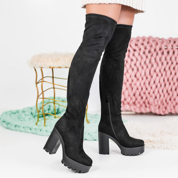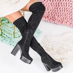 Екстериор - еко велур, интериор - текстил и лека подплата, ток - 12 см, платформа - 4,4 см, обща дължина на модела - 67 см.