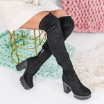 Дамски боти Taylor - Black са елегантен модел, изработен от еко велур и лачена еко кожа с лека подплата и дебелина на тока - 3 см.