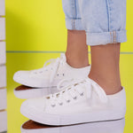 Дамски гуменки Ilona - White са семпъл модел с ниска подметка. Изработени са от текстил. Моделът е наличен още в черен цвят.