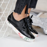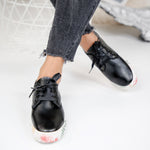 Дамски кецове ABRIANA – BLACK са очарователно предложение за вашата модна визия, с което ще си осигурите небивал комфорт. Отлично решение както за ежедневна употреба, така и за разнообразни спортни занимания, фитнес или походи. Гладката еко кожа, от която е изработена горната част на модела изглежда невероятно стилно, а подметката е издържана с красива декорация, за повече визуален интерес.
