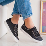 Дамски кецове ANAYA – BLACK са перфектното допълнение към вашия спортно-елегантен стил. Идват с много високо качество както на изработката, така и на материалите, вложени в нея. Ще ви дарят с лекота и удобство през целия ден. Здравата подметка е еластична, за да обезпечи лека и свободна походка. Черният цвят ги прави подходящи за съчетание с тоалети в различни цветове.