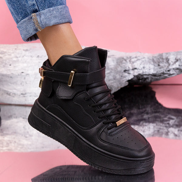 Дамски кецове Agrita - Black са интересен и удобен модел, изработен от еко кожа с дебелина на подметката - 4,5 см.