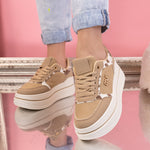 Дамски кецове Fabiola - Khaki са интересен модел, изработен от еко кожа с дебелина на подметката - 5 см.
