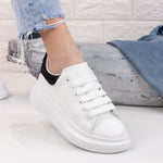 Дамски кецове Ferry - White/Black са изчистен и удобен модел, изработен от еко кожа с дебелина на подметката - 4 см.