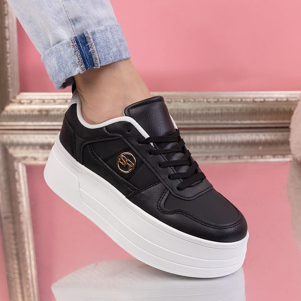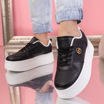 Дамски кецове Iza - Black са изчистен модел, изработен от еко кожа с дебела подметка - 5,5 см.