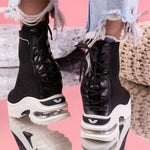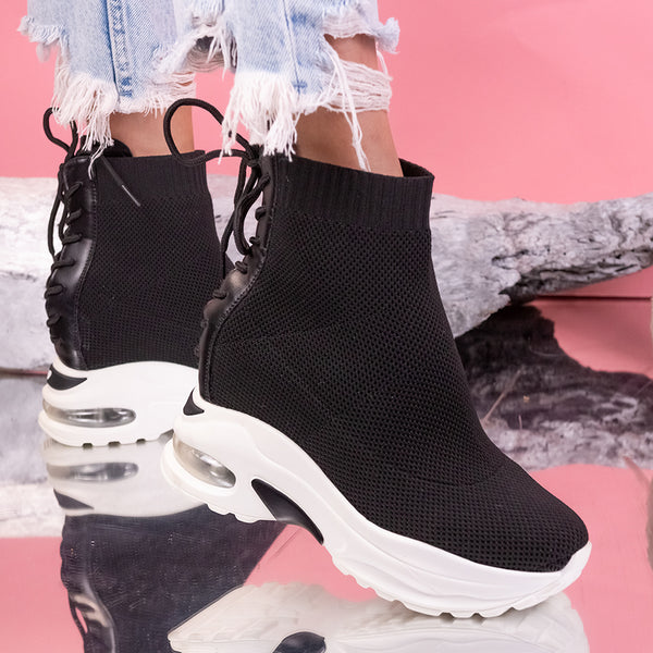 Дамски кецове на платформа Ivona - Black са удобен дамски модел на платформа, изработени от текстил с връзки на петата. Общата височина на платформата е 9 см.