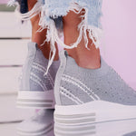 Дамски кецове на платформа Ramina -Grey - акцентът на всяка спортна визия. Изработени от текстил, с 5,5 см платформа, чаровни и удобни за всеки ден.