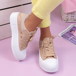 Дамски обувки Alena - Khaki са ежедневен модел с декорация и принт, изработен от еко велур с дебелина на подметката - 3,5 см.
