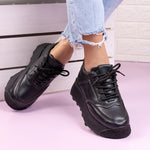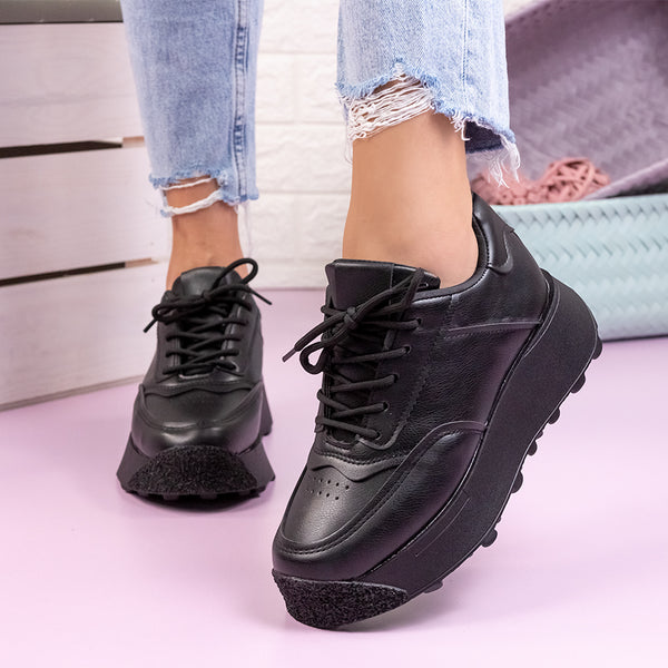 Дамски маратонки Marry - Black са удобен модел, изработен от еко кожа и текстил с дебелина на подметката - 4,5 см.