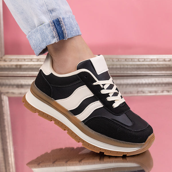 Дамски маратонки Ioana - Black са много удобен модел, изработен от еко кожа с дебелина на подметката - 3,5 см.