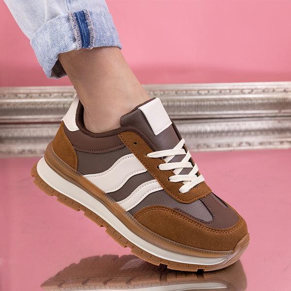 Дамски маратонки Ioana - Brown са много удобен модел, изработен от еко кожа с дебелина на подметката - 3,5 см.