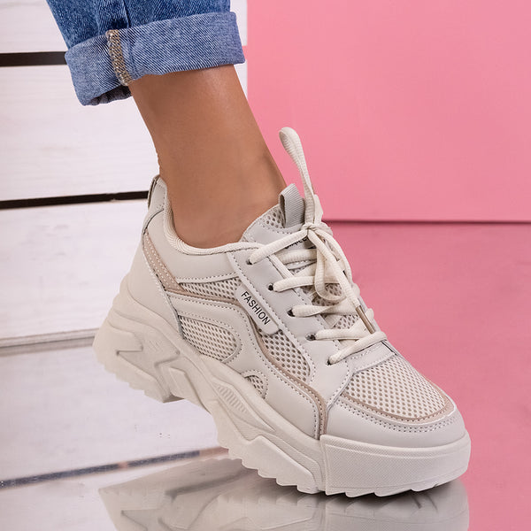 Дамски маратонки Nifea - Khaki са модерен и много удобен модел, изработен от еко кожа и текстил с дебелина на подметката - 5 см.