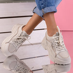 Дамски маратонки Marry - Silver са удобен модел, изработен от еко кожа и текстил с дебелина на подметката - 4,5 см.