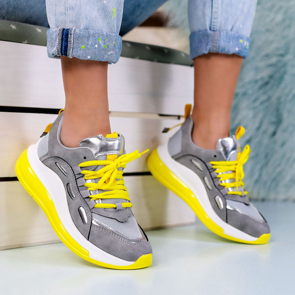 Дамски маратонки Otisa - Grey са перфектни за Вас! Материала е от еко кожа и текстил, а подметката е 4.5см.